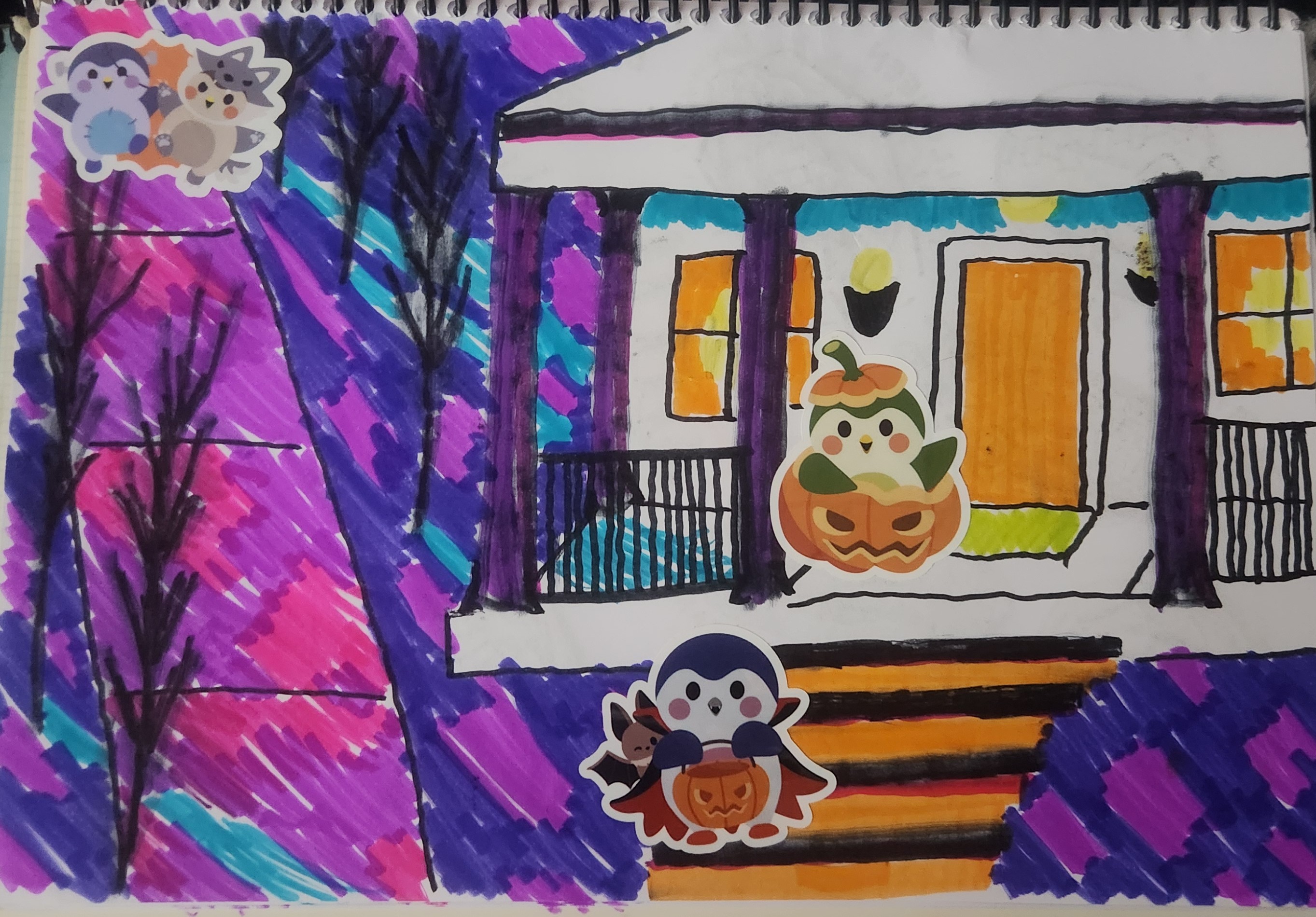 3. Colored a scene for some stickers (they are from my Finch self care app)